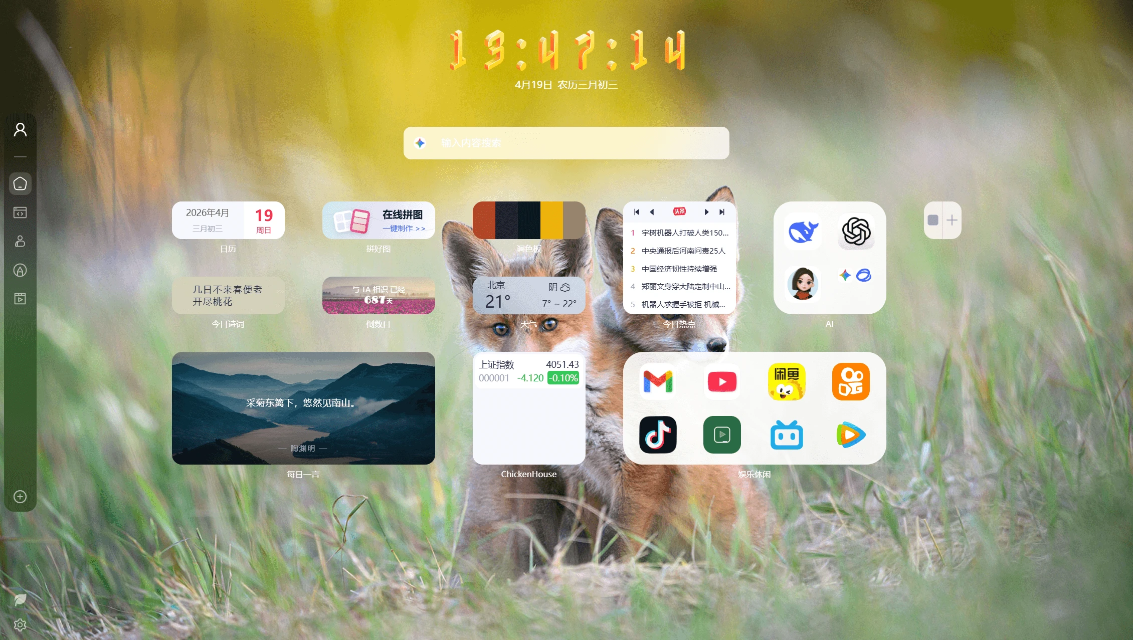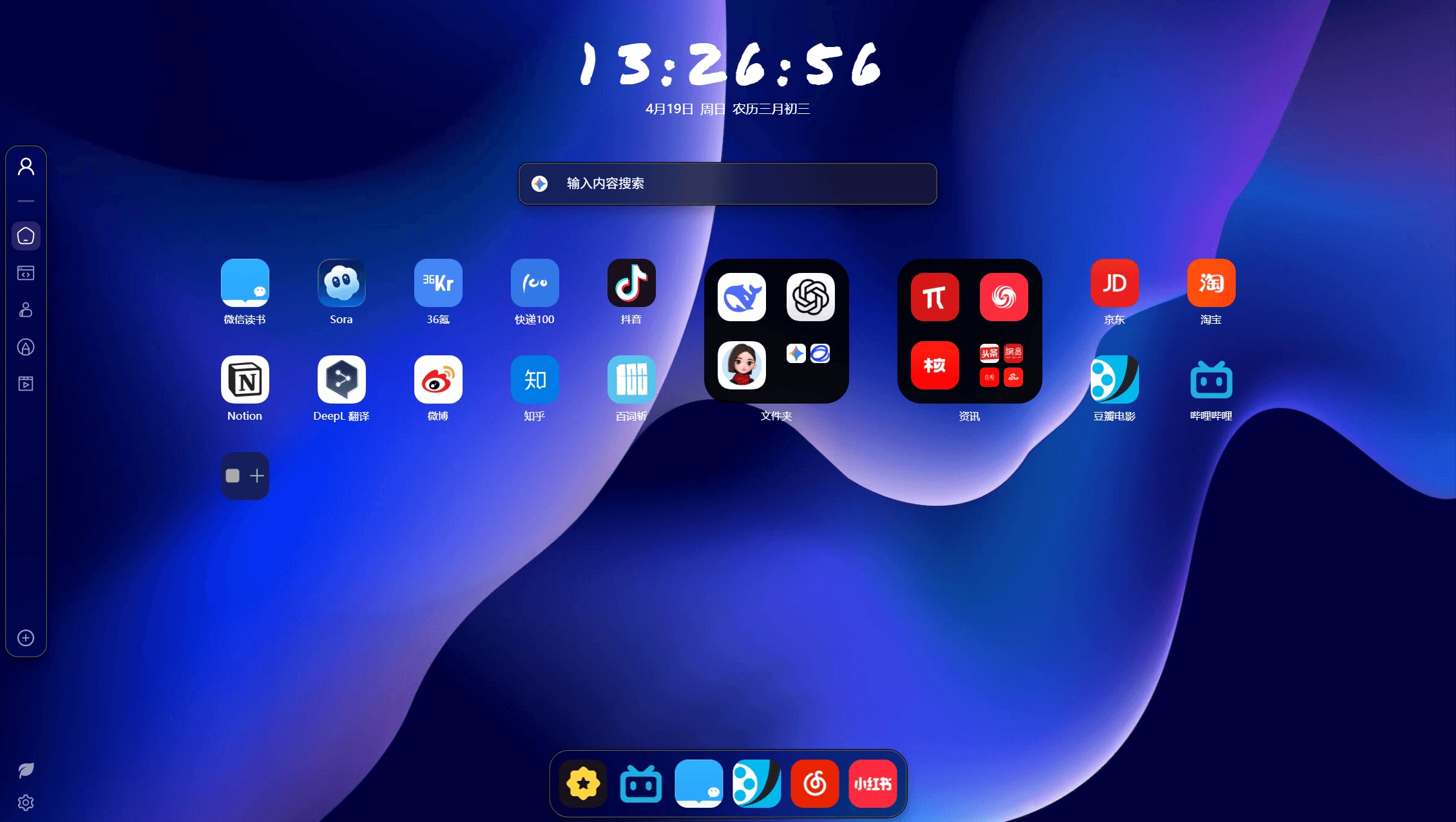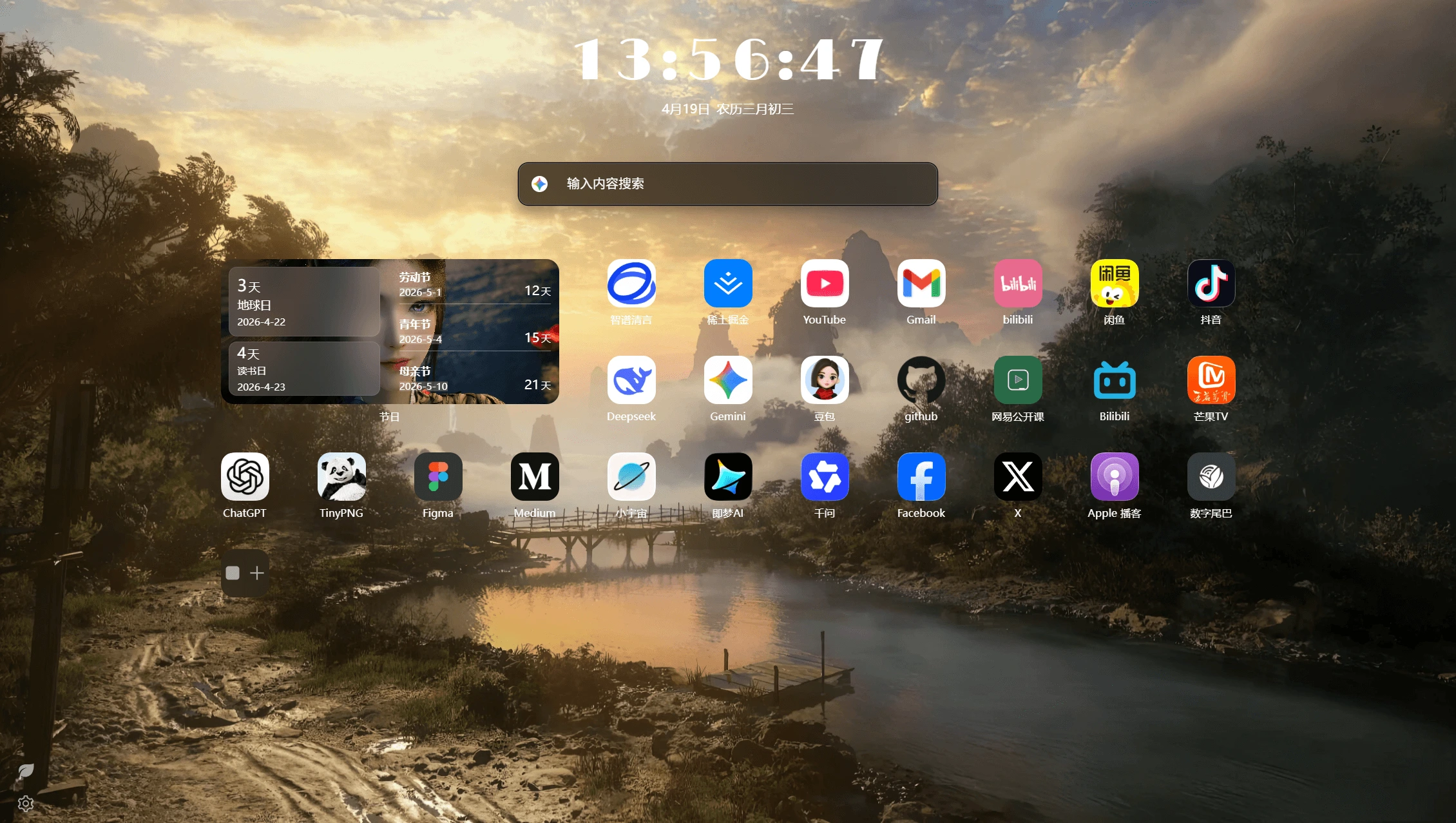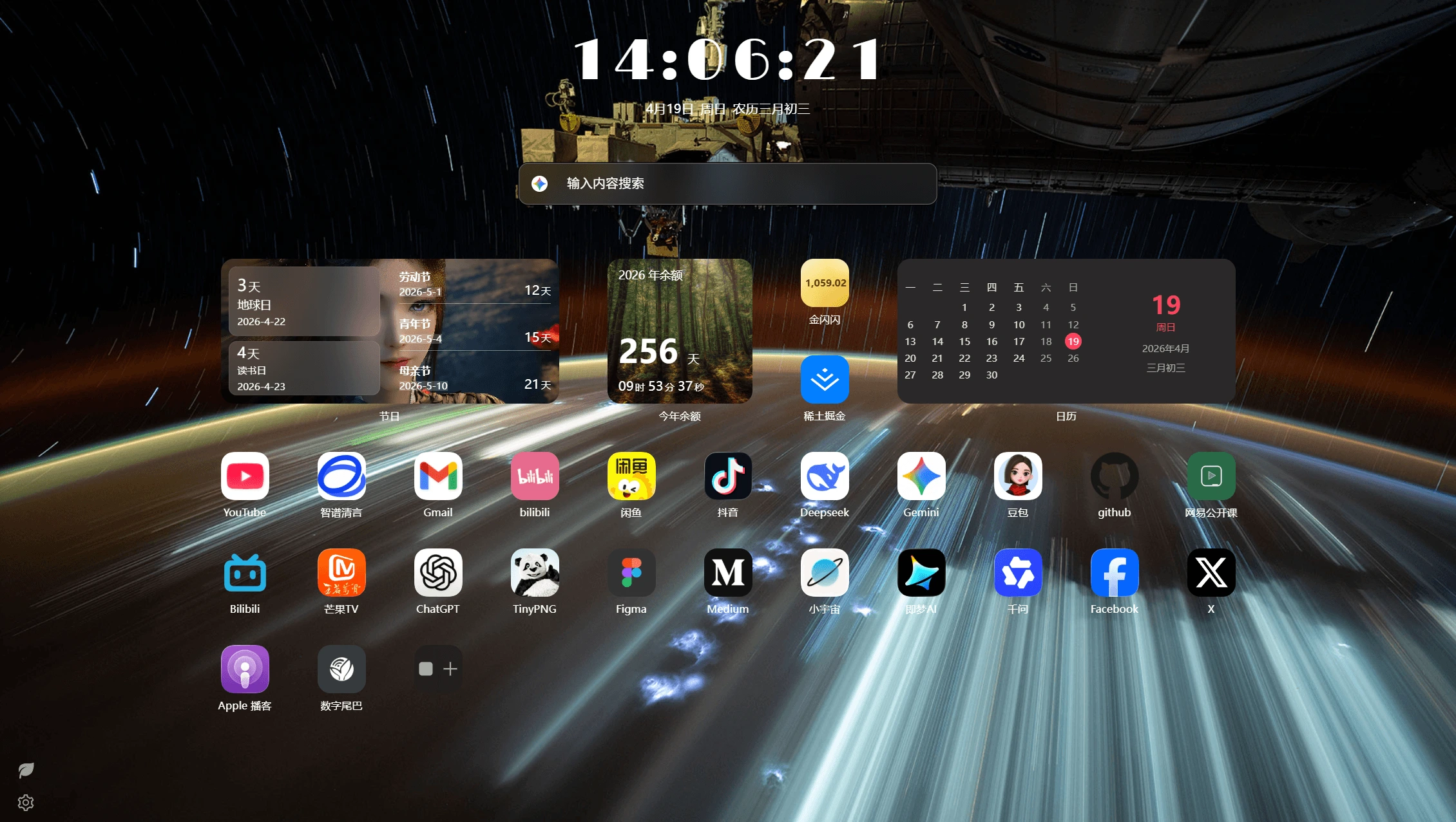 程序坞是一个方便的快捷入口, 在这里放置你常用小组件和导航